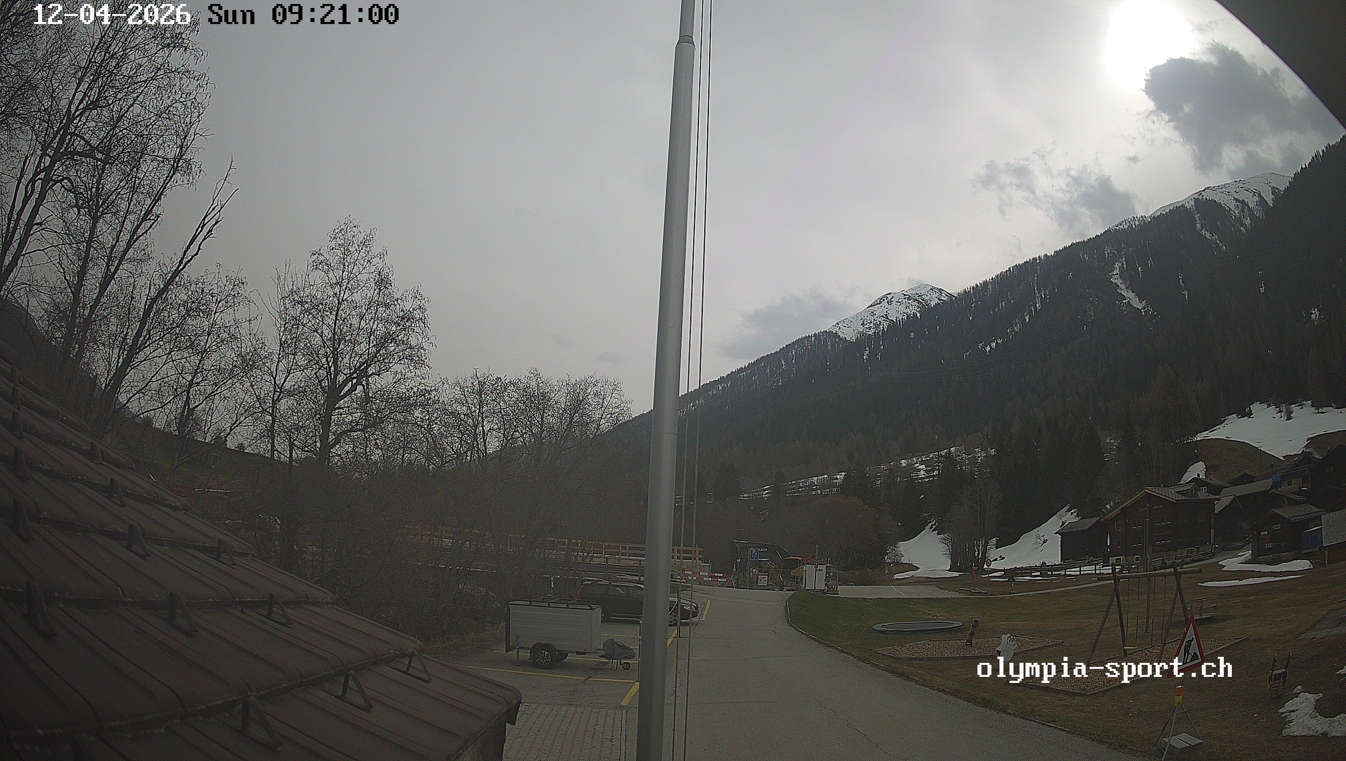 Die Webcam befindet sich am Sportgeschäft Olympia Sport in Blitzingen und zeigt den Spielplatz und Parkplätze auf der linken Seite.