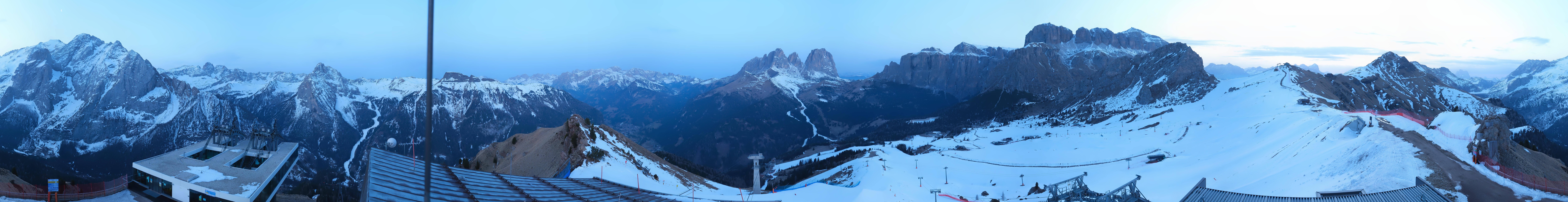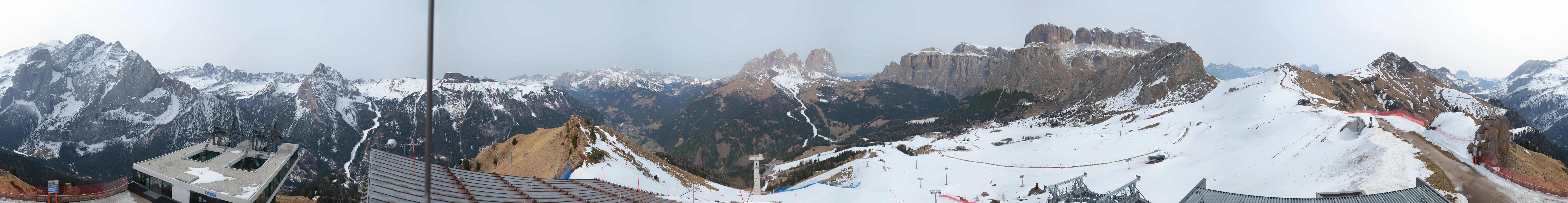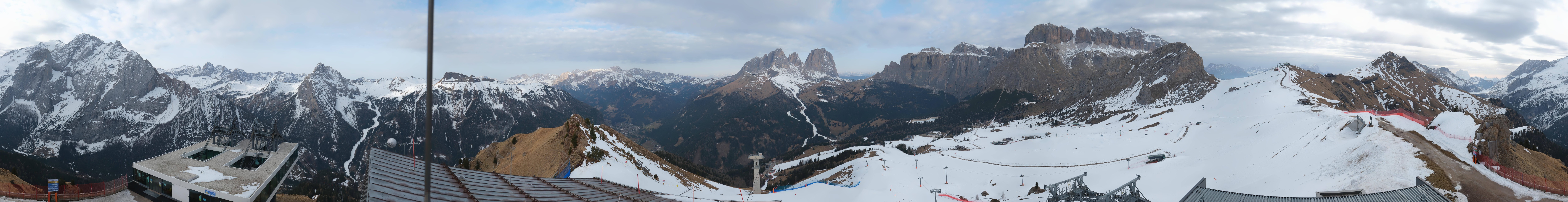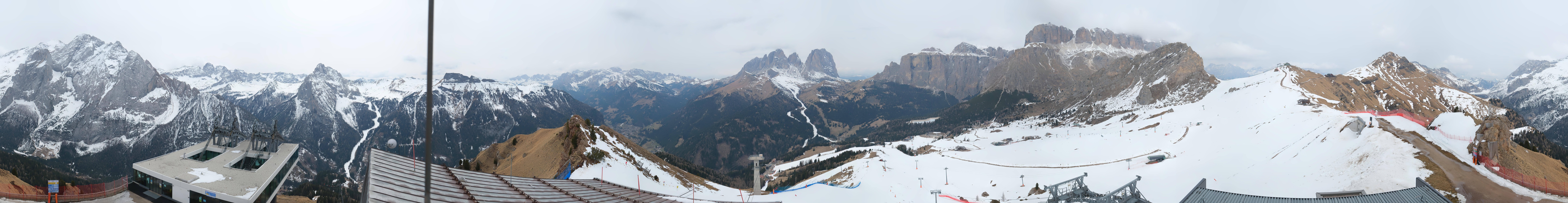 Die Webcam zeigt die Aussicht vom Col dei Rossi in Canazei auf die Lifte unterhalb des Sellastocks. Es ist ein Teil der Sella Ronda, die die Skigebiete Gröden, Alta Badia und Arabba mit dem Fassatal verbindet.