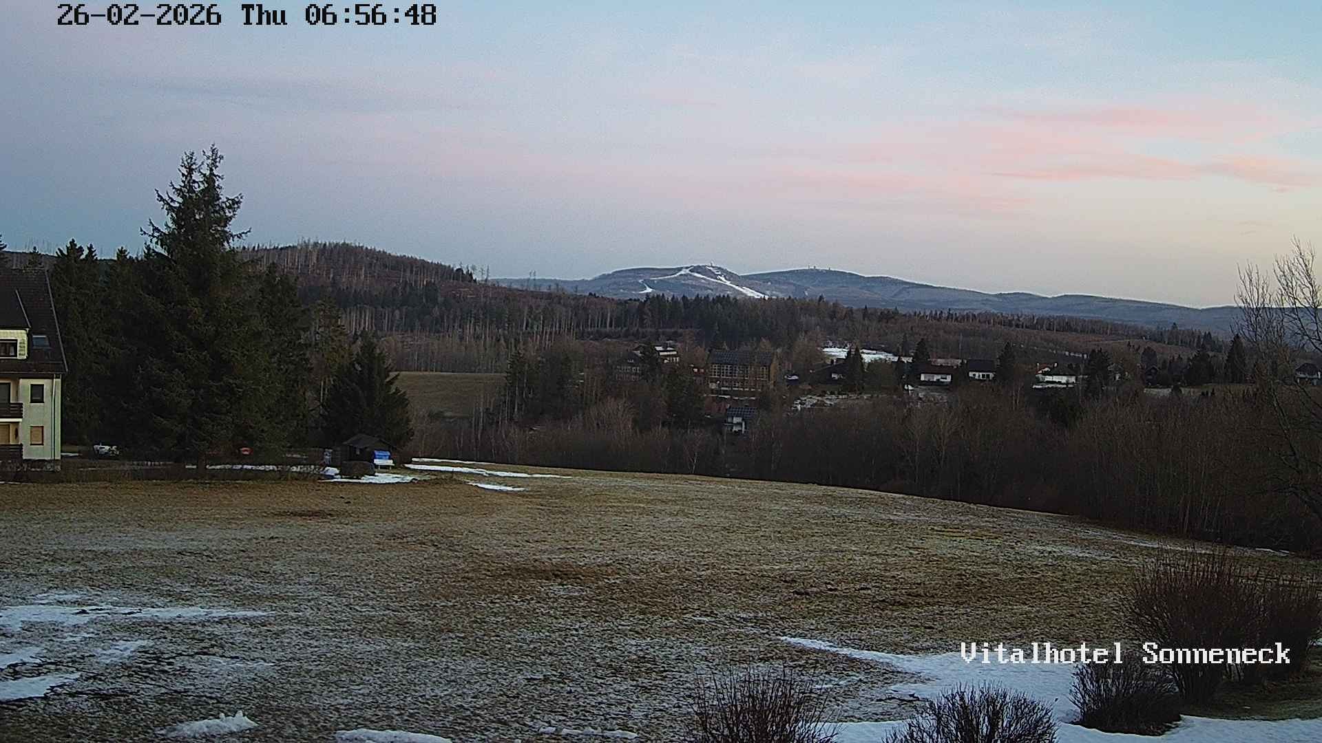 Archived webcam image showing Braunlage-Hohegeiß: Panoramic view on 26 Feb 2026 at 06:02 05:00