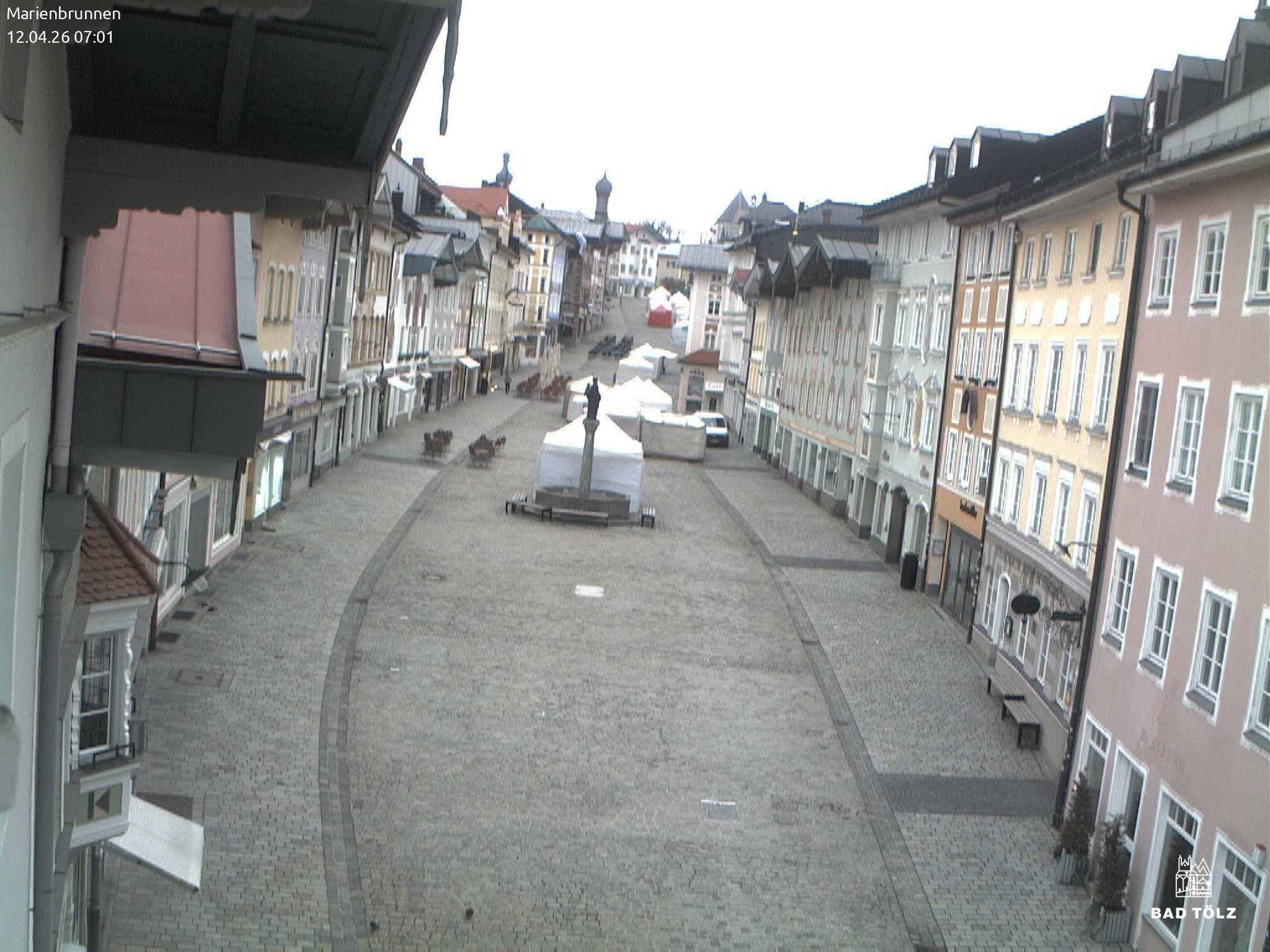Archiviertes Webcam Bild: Webcam in Bad Tölz - Marienbrunnen am 12.04.2026 um 07:54 Uhr 07:00