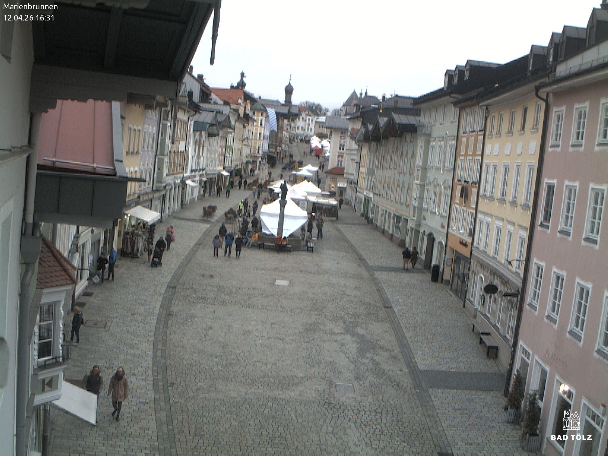 Archiviertes Webcam Bild: Webcam in Bad Tölz - Marienbrunnen am 12.04.2026 um 16:54 Uhr 16:00