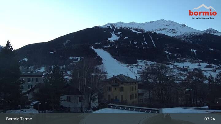 Archiviertes Webcam Bild: Bormio: Blick von der Therme aufs Skigebiet am 26 Feb 2026 um 08:04 Uhr 07:00