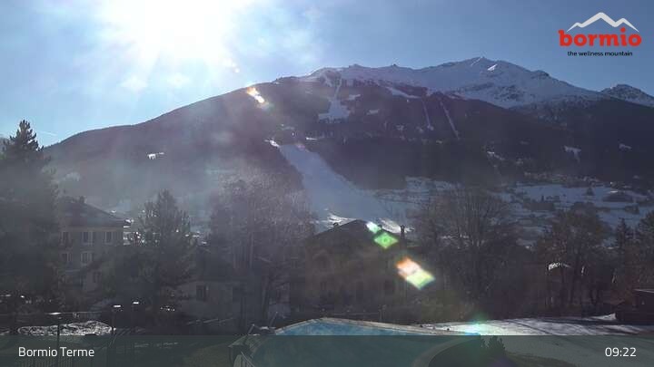 Archiviertes Webcam Bild: Bormio: Blick von der Therme aufs Skigebiet am 26 Feb 2026 um 09:04 Uhr 08:00