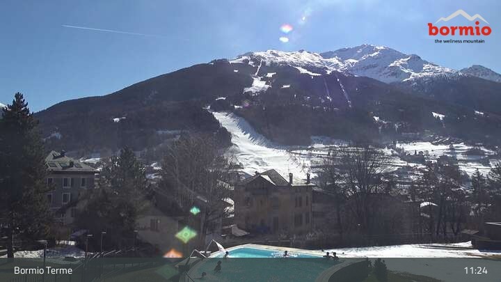 Archiviertes Webcam Bild: Bormio: Blick von der Therme aufs Skigebiet am 26 Feb 2026 um 11:04 Uhr 10:00