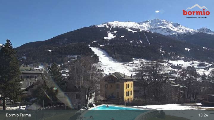 Archiviertes Webcam Bild: Bormio: Blick von der Therme aufs Skigebiet am 26 Feb 2026 um 13:04 Uhr 12:00