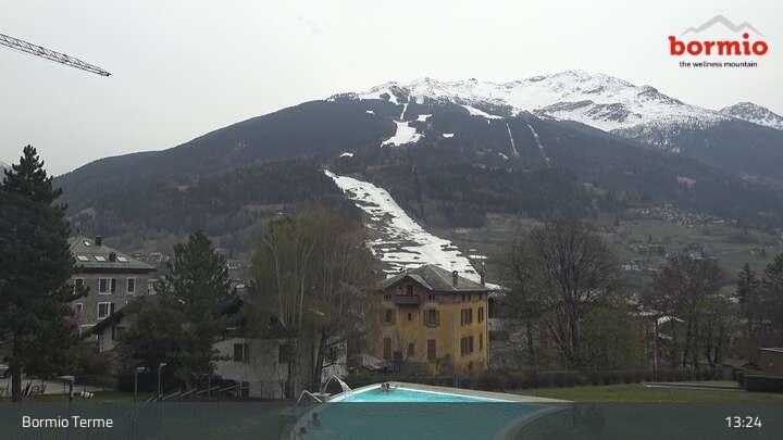 Archiviertes Webcam Bild: Bormio: Blick von der Therme aufs Skigebiet am 12.04.2026 um 13:38 Uhr 13:00