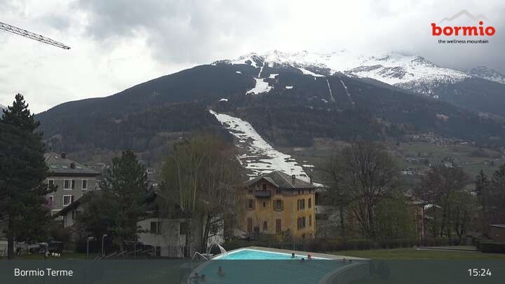 Archiviertes Webcam Bild: Bormio: Blick von der Therme aufs Skigebiet am 12.04.2026 um 15:38 Uhr 15:00