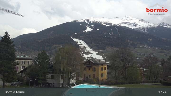 Archiviertes Webcam Bild: Bormio: Blick von der Therme aufs Skigebiet am 12.04.2026 um 17:38 Uhr Aktuell