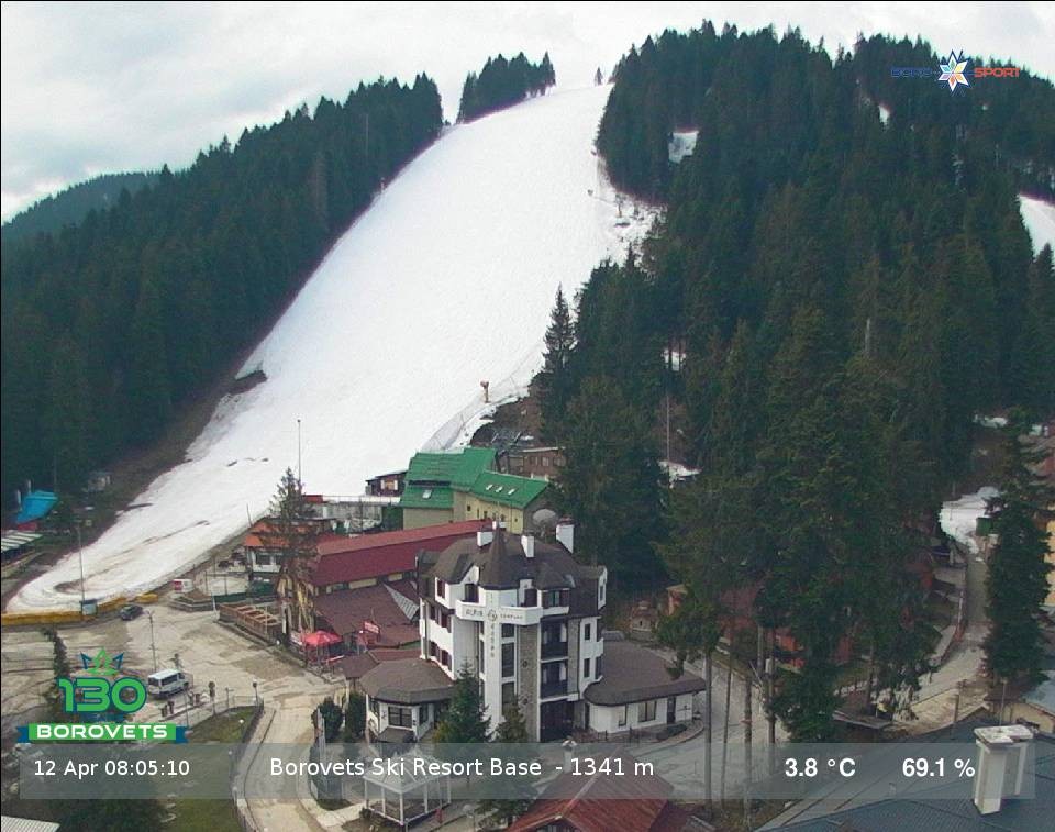 Archiviertes Webcam Bild: Borovets Ski Center II am 12.04.2026 um 08:01 Uhr 09:00