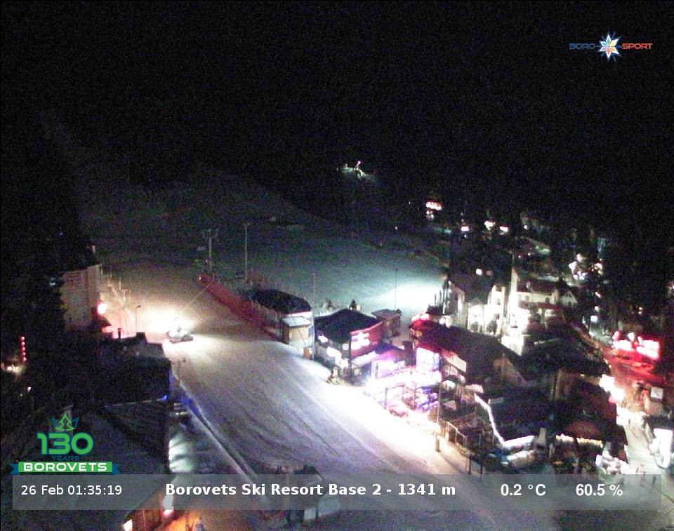 Archived webcam image showing Borovets Base on 26 Feb 2026 at 02:52 02:00