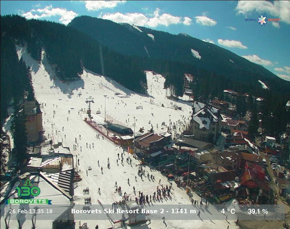 Archived webcam image showing Borovets Base on 26 Feb 2026 at 14:52 14:00