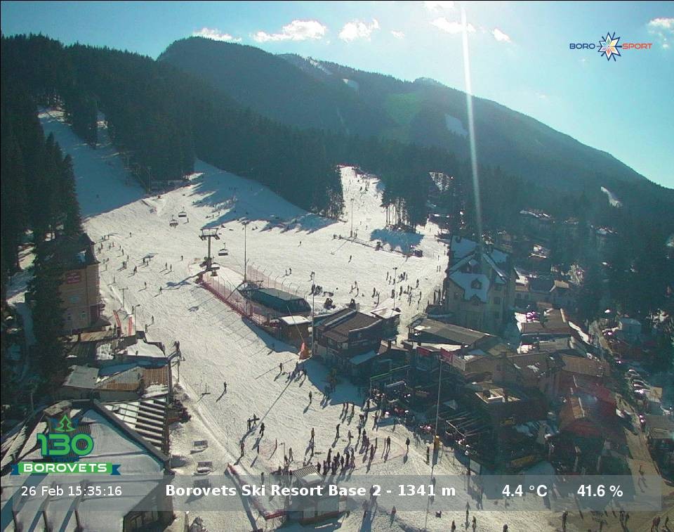 Archived webcam image showing Borovets Base on 26 Feb 2026 at 16:52 16:00