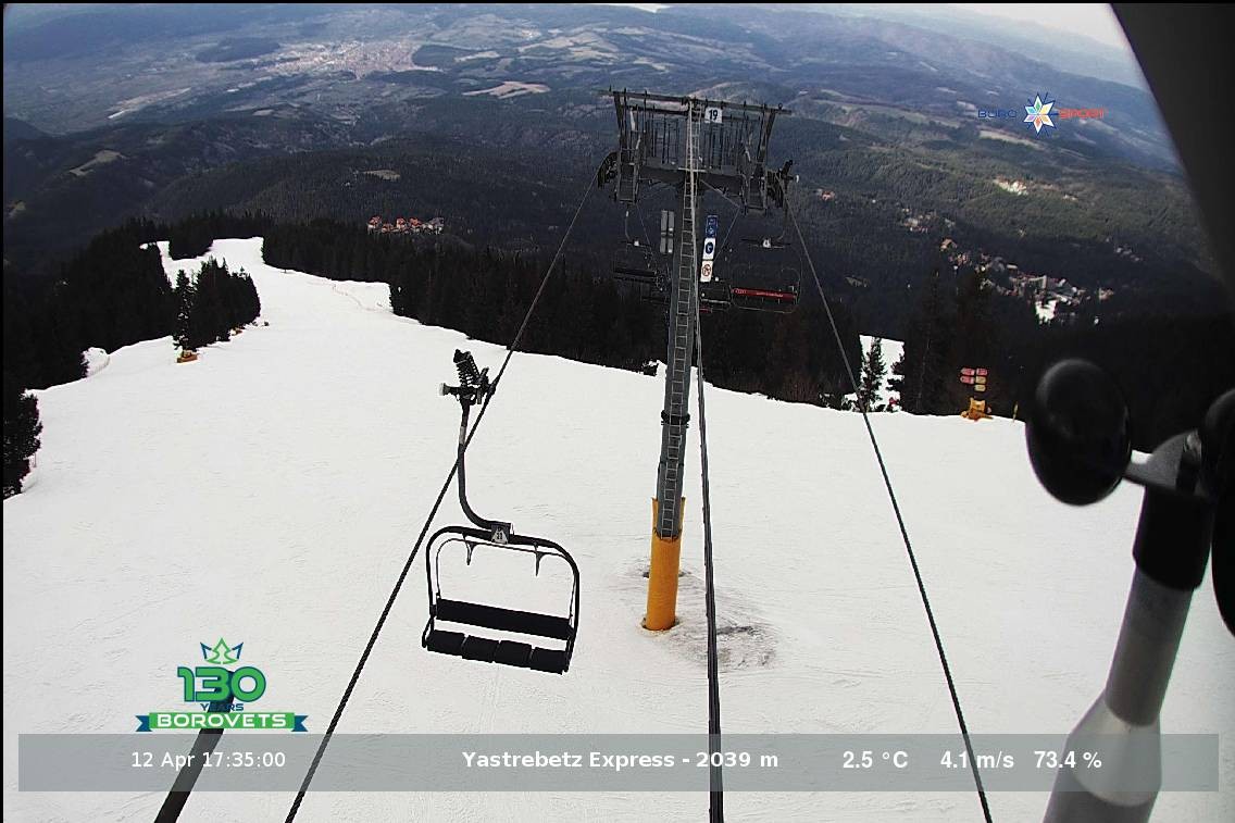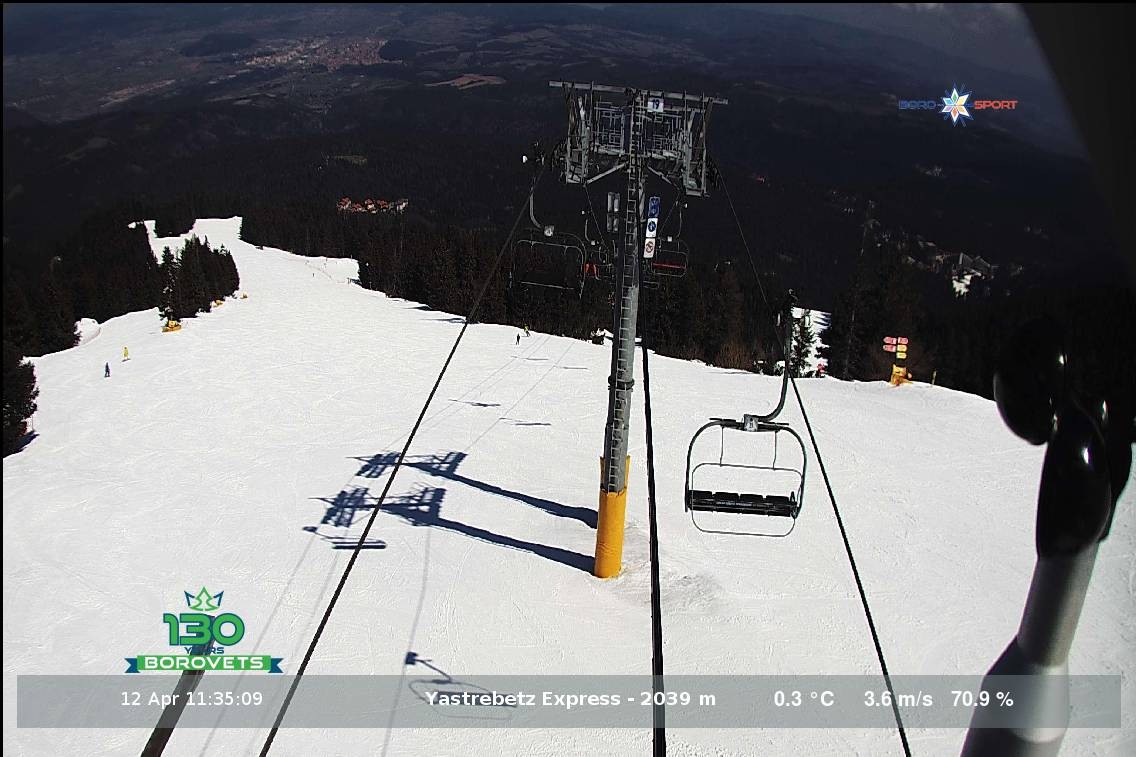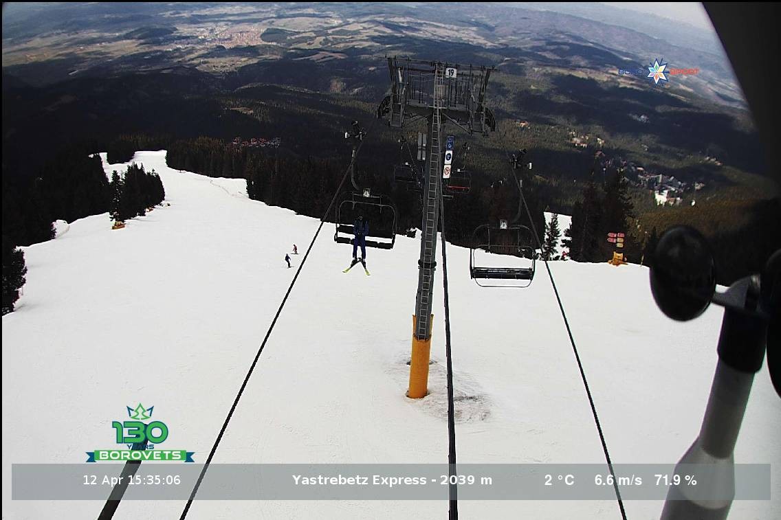 Diese Webcam zeigt den Blick auf den 4er Sessellift Yastrebets Express auf einer Höhe von 2.039 Metern.