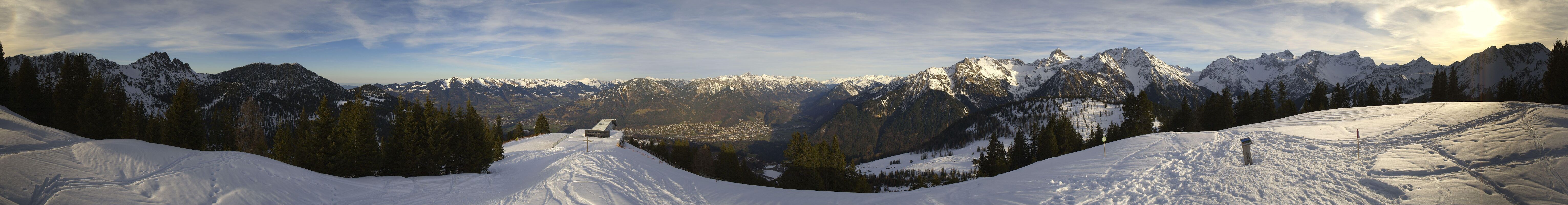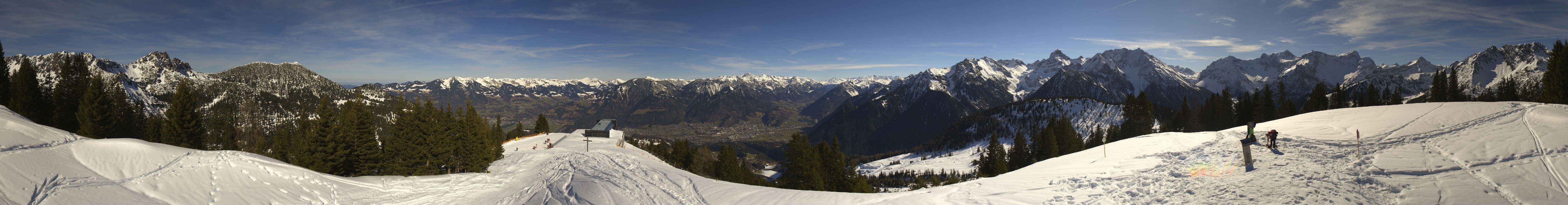 Genieße den Ausblick vom Loischkopf im Skigebiet Brandnertal. Die Kamera befindet sich etwas oberhalb der Bergstation der Loischkopf-Sesselbahn und blickt ins Tal nach Bludenz.