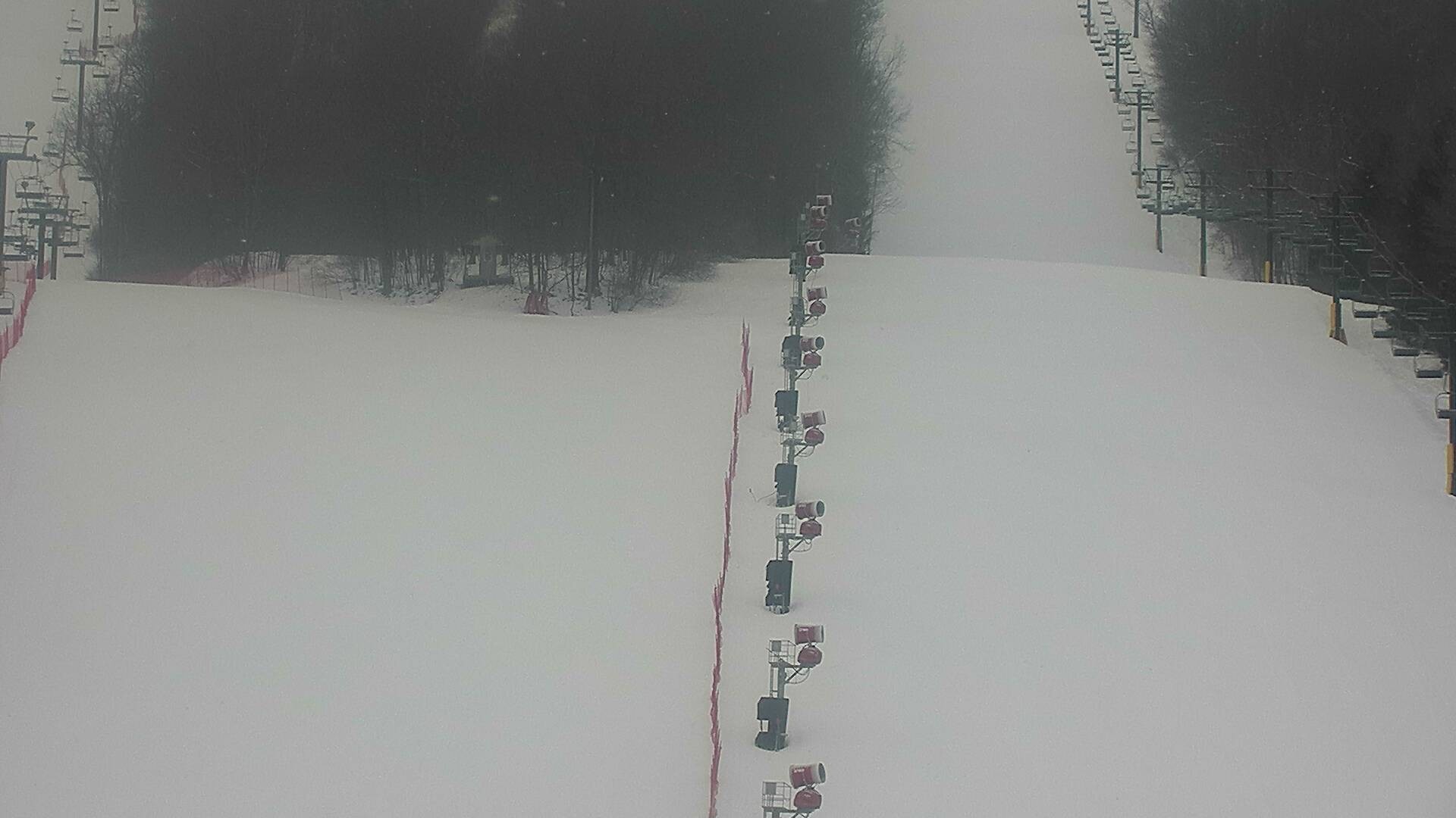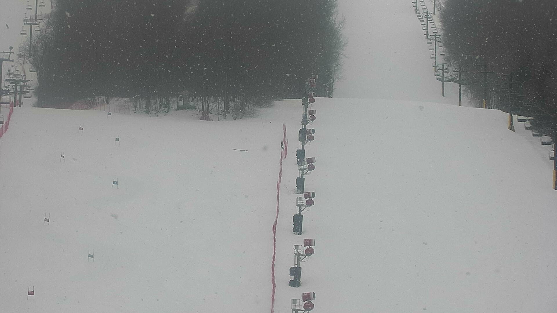 Die Webcam zeigt dir den Blick auf den Rocket Triple Sessellift im Skigebiet Bristol Mountain in New York, USA. Für Schneesicherheit und optimale Pistenverhältnisse ist dank ausreichen Schneekanonen gesorgt, wie auf dem Bild gut zu erkennen ist.