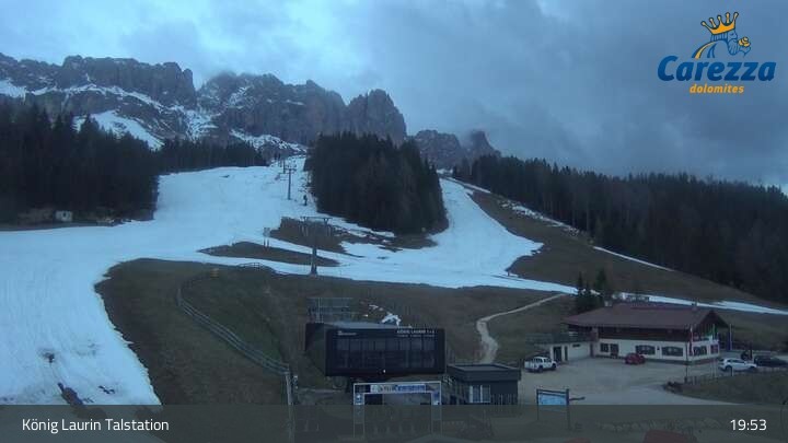 Archiviertes Webcam Bild: Carezza: Talstation König Laurin am 12.04.2026 um 19:59 Uhr 19:00