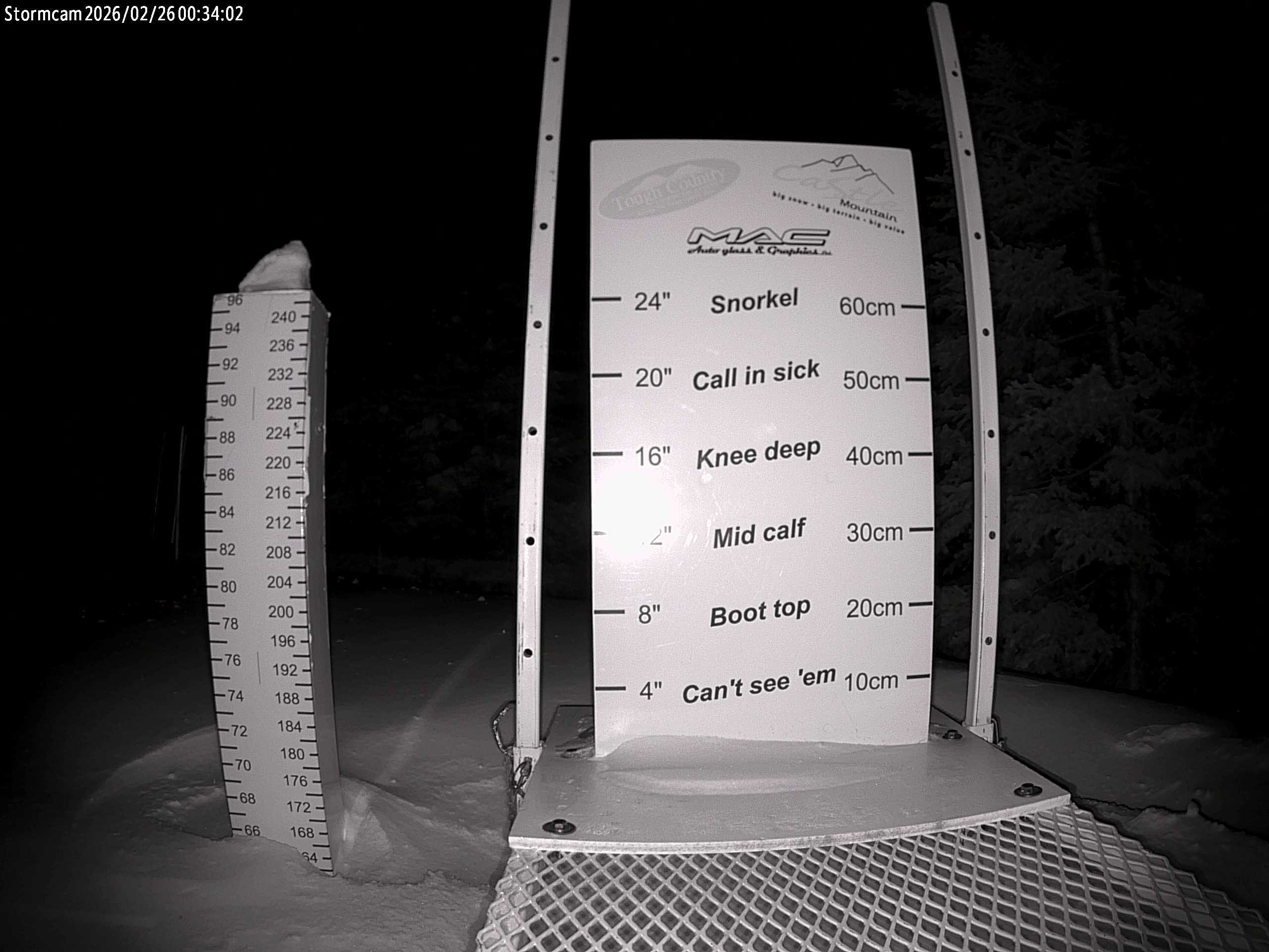 Archived webcam image showing Storm Cam Castle Mountain on 26 Feb 2026 at 08:36 23:00