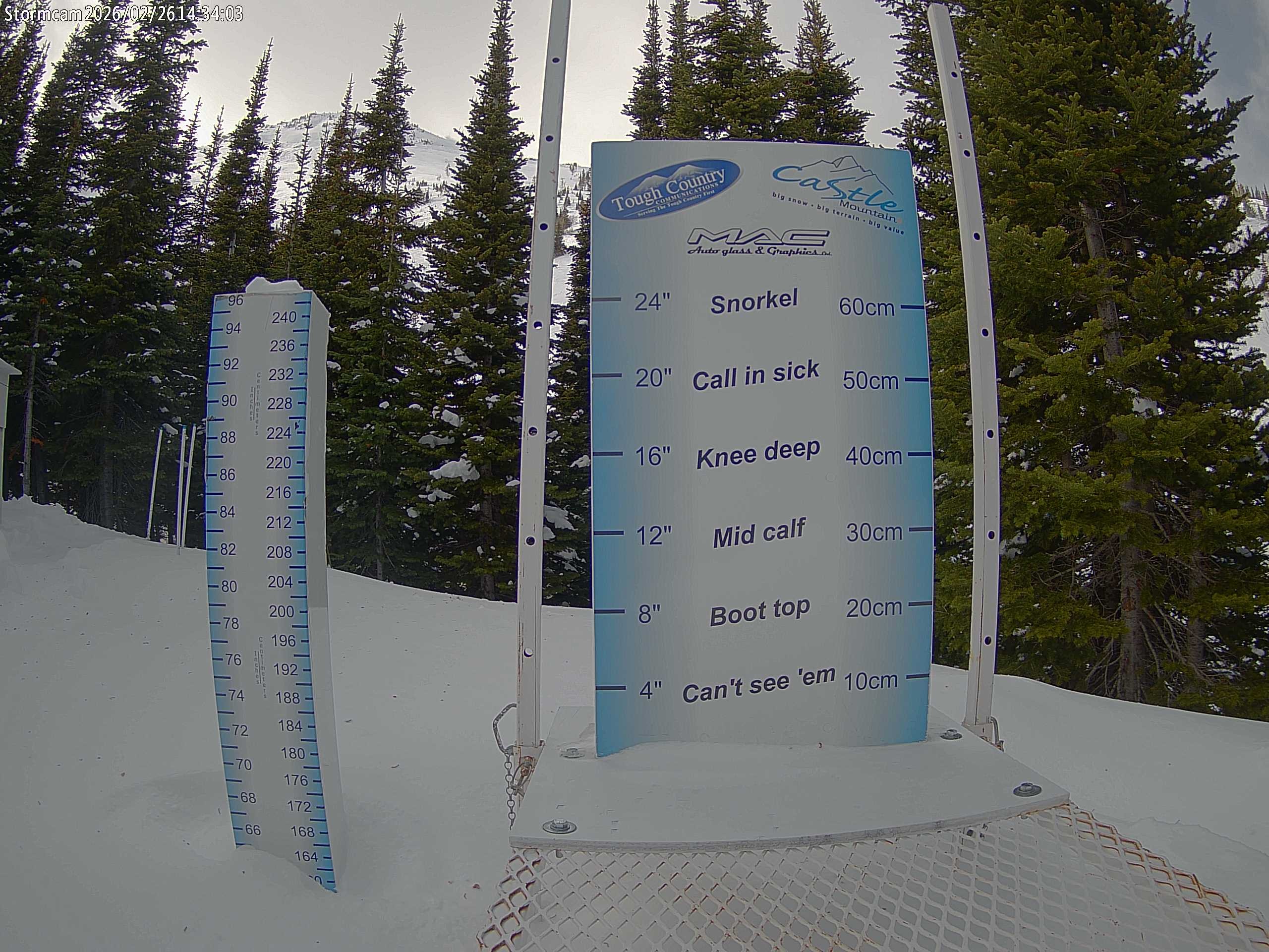 Archived webcam image showing Storm Cam Castle Mountain on 26 Feb 2026 at 12:36 03:00