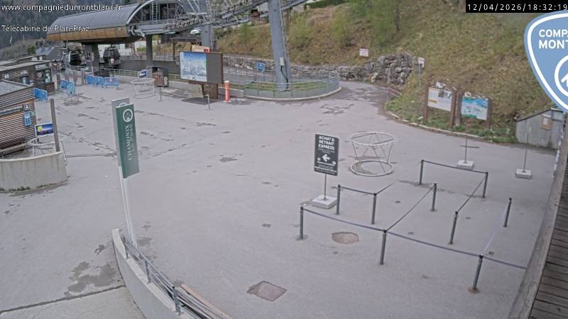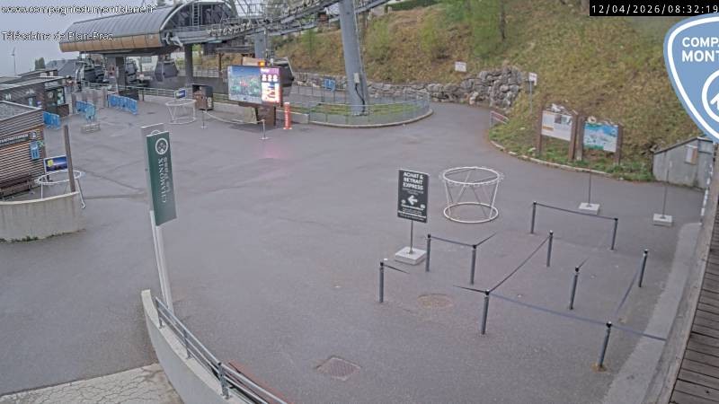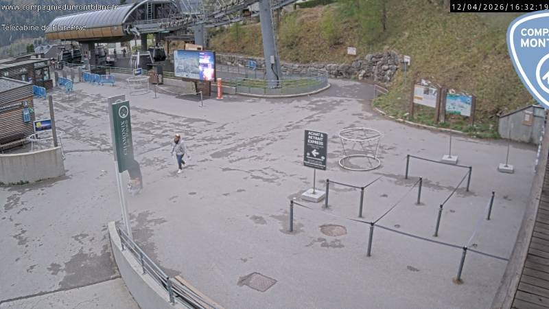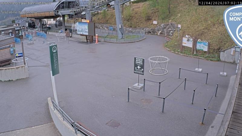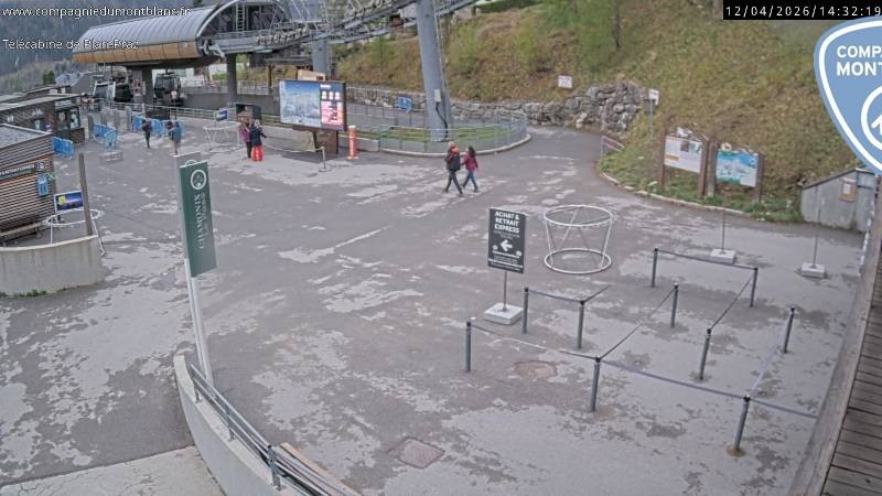 Die Webcam zeigt die Talstation der Planpraz Gondelbahn im französischen Skigebiet Charmonix Mont Blanc.