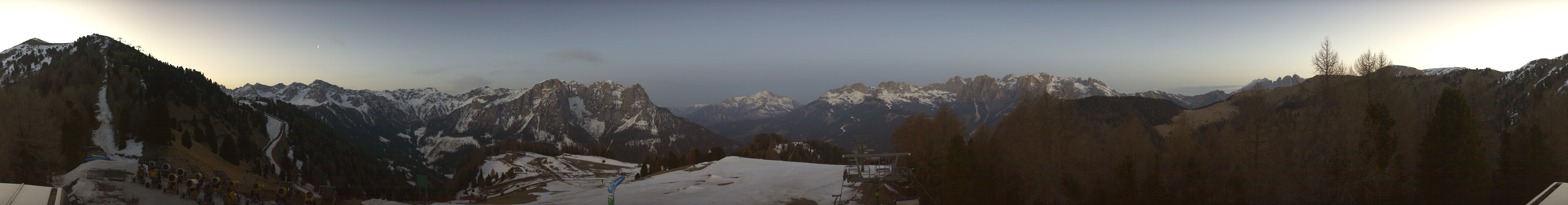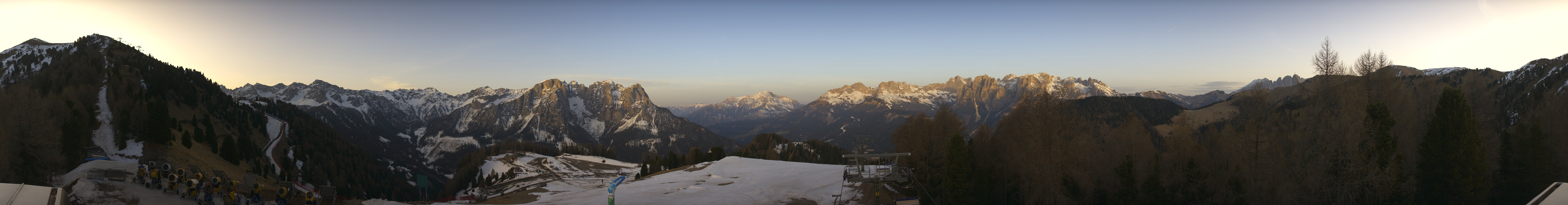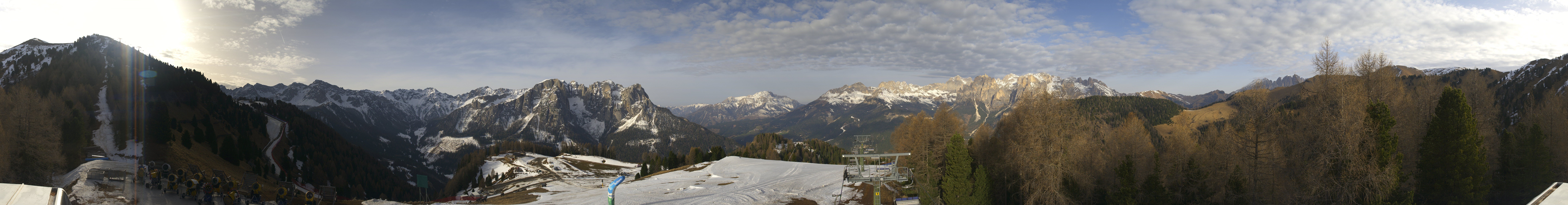 Diese Webcam eröffnet dir den Blick vom Buffaure im Skigebiet Pozza di Fassa ins Fassatal (Trentino). Hier hast du ein 360 Grad Panorama auf die Dolomiten, darunter die Rosengartengruppe (3004 m), den Langkofel (3181 m) und die Marmolata (3343 m).
