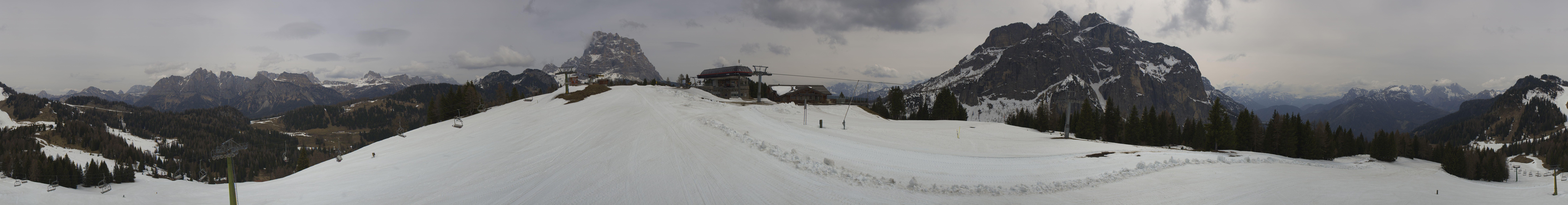 Panoramablick vom Gipfel des Col dei Baldi, den du mit der gleichnamigen Gondelbahn und dem 4er-Sessel Pelmo erreichst.