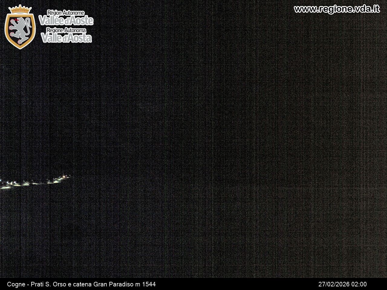 Archived webcam image showing Cogne Gran Paradiso View over the valley on 26 Feb 2026 at 02:51 01:00