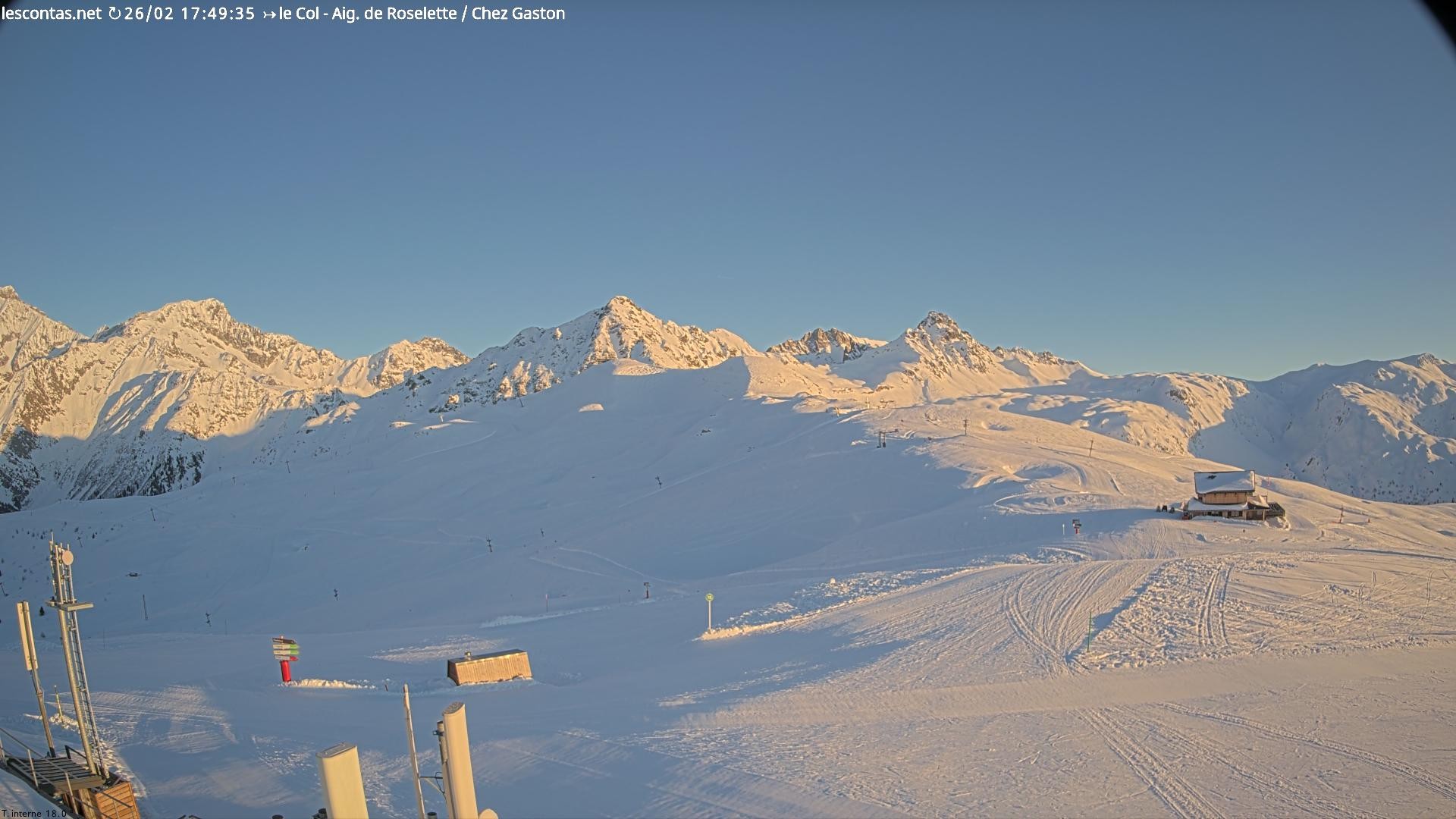 Archived webcam image showing Col du Joly: Les Contamines Montjoie on Feb 26, 2026 at 6:17 AM 00:00