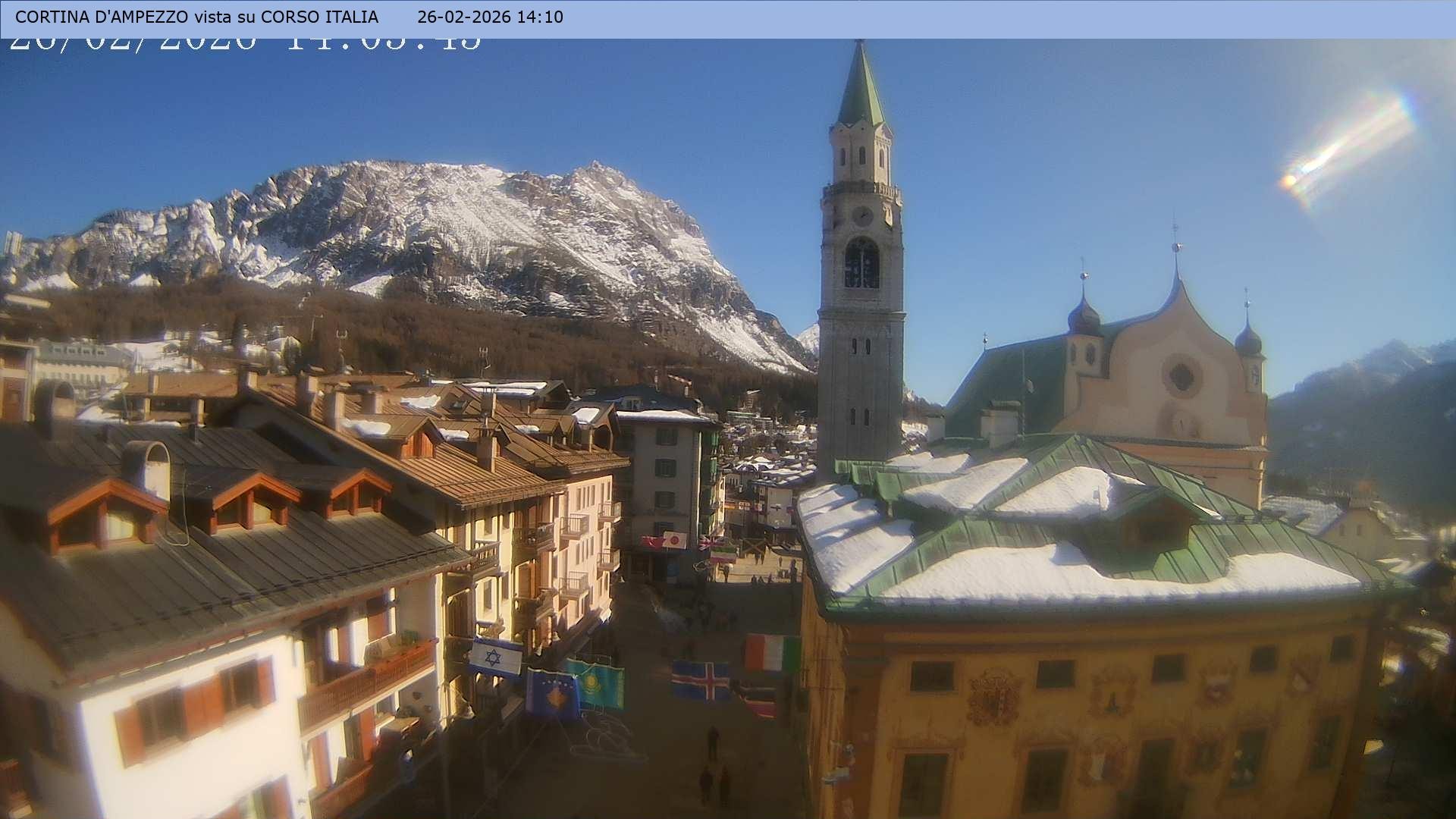 Archiviertes Webcam Bild: Cortina d'Ampezzo: Fußgängerzone am 26 Feb 2026 um 14:09 Uhr 13:00