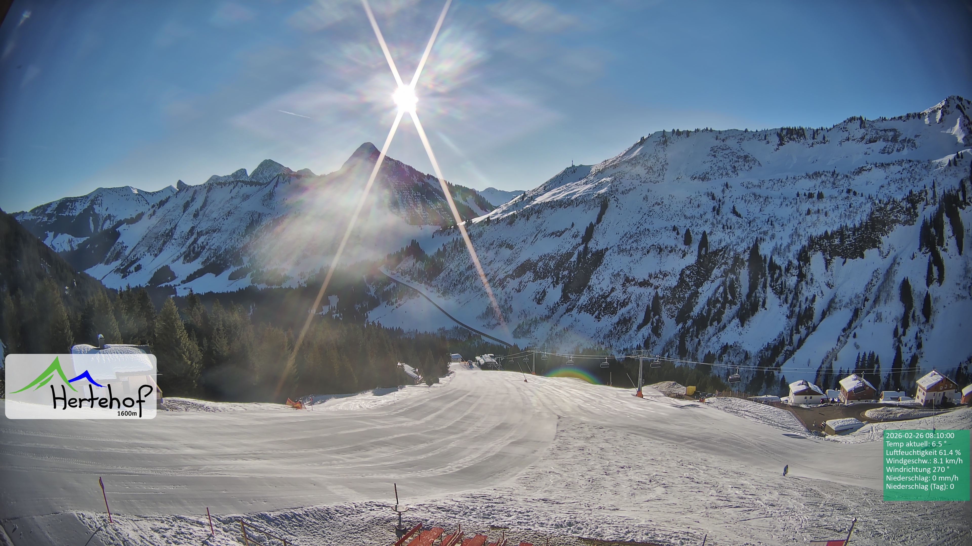 Archiviertes Webcam Bild: Damüls: Hertehof am 26 Feb 2026 um 08:04 Uhr 07:00