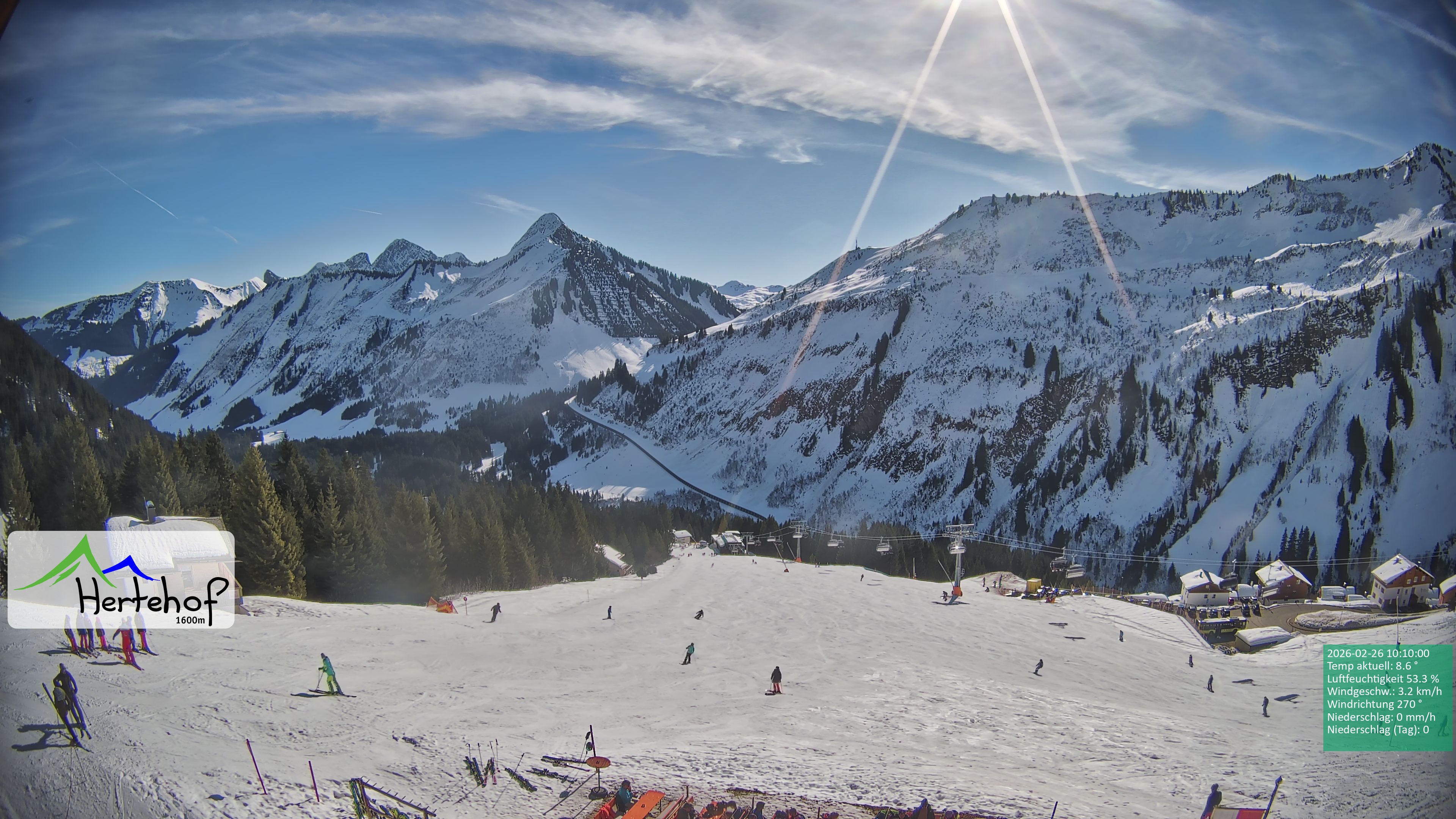 Archiviertes Webcam Bild: Damüls: Hertehof am 26 Feb 2026 um 10:04 Uhr 09:00