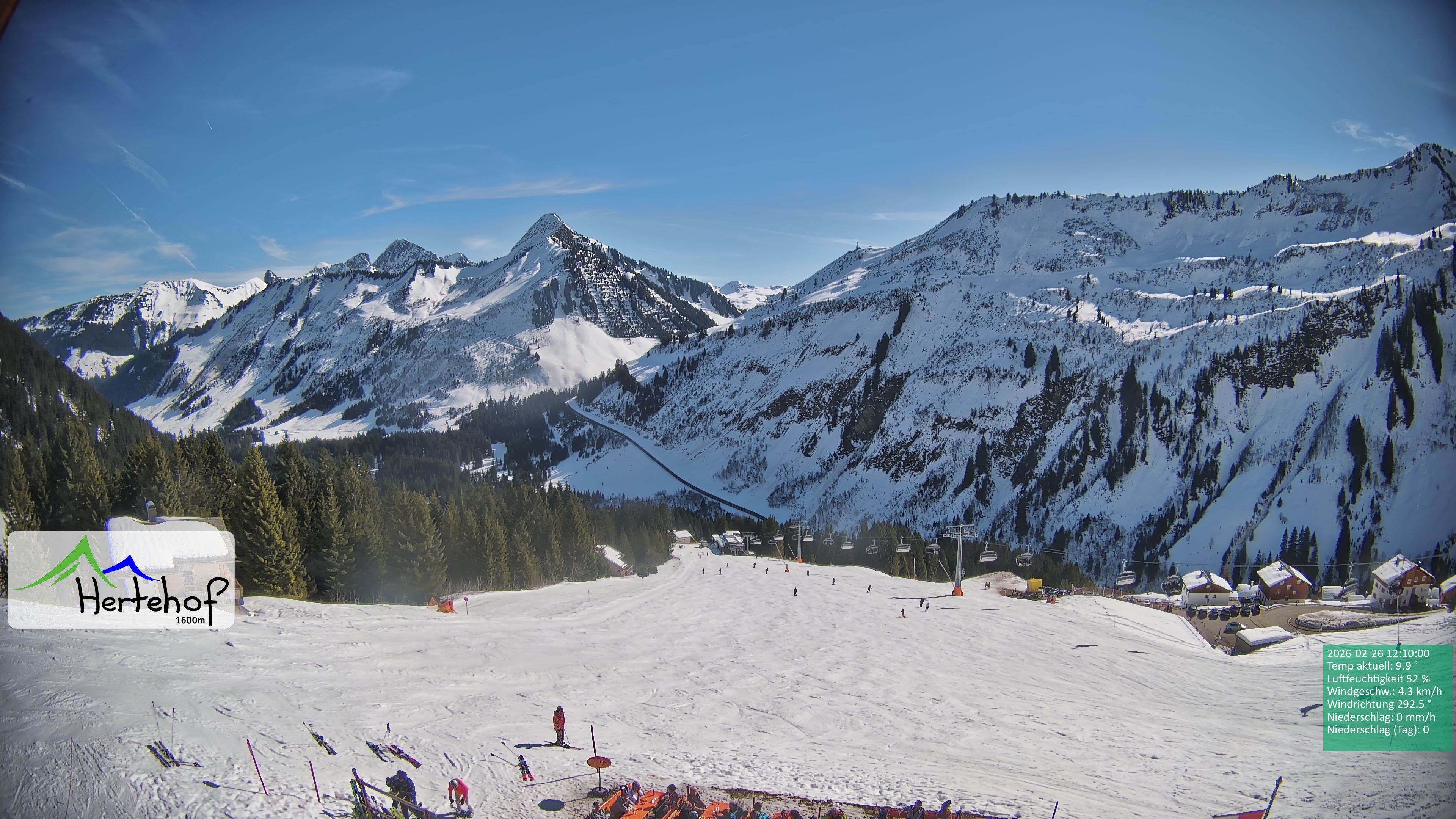 Archiviertes Webcam Bild: Damüls: Hertehof am 26 Feb 2026 um 14:04 Uhr 13:00
