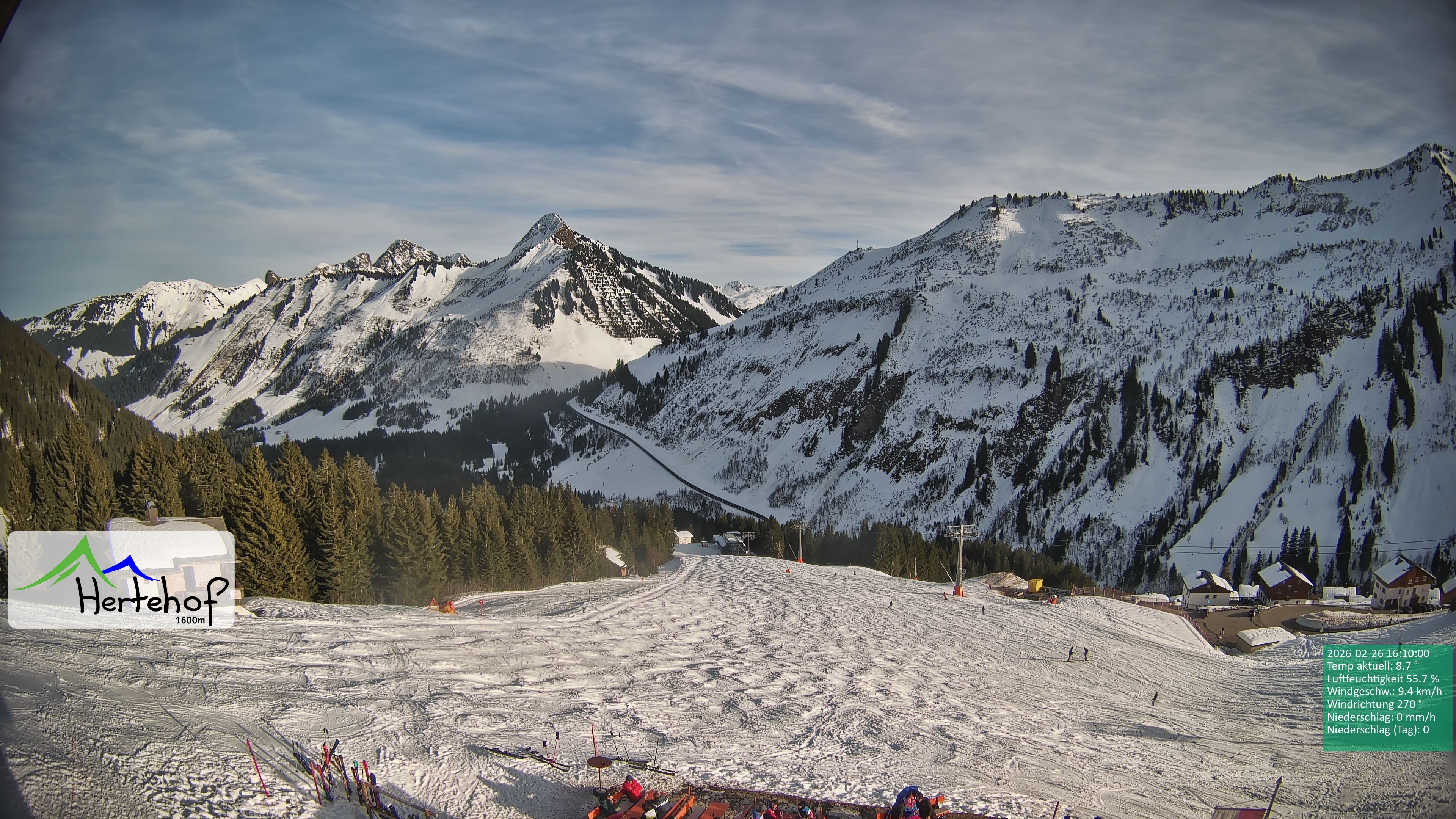 Archiviertes Webcam Bild: Damüls: Hertehof am 26 Feb 2026 um 16:04 Uhr Aktuell