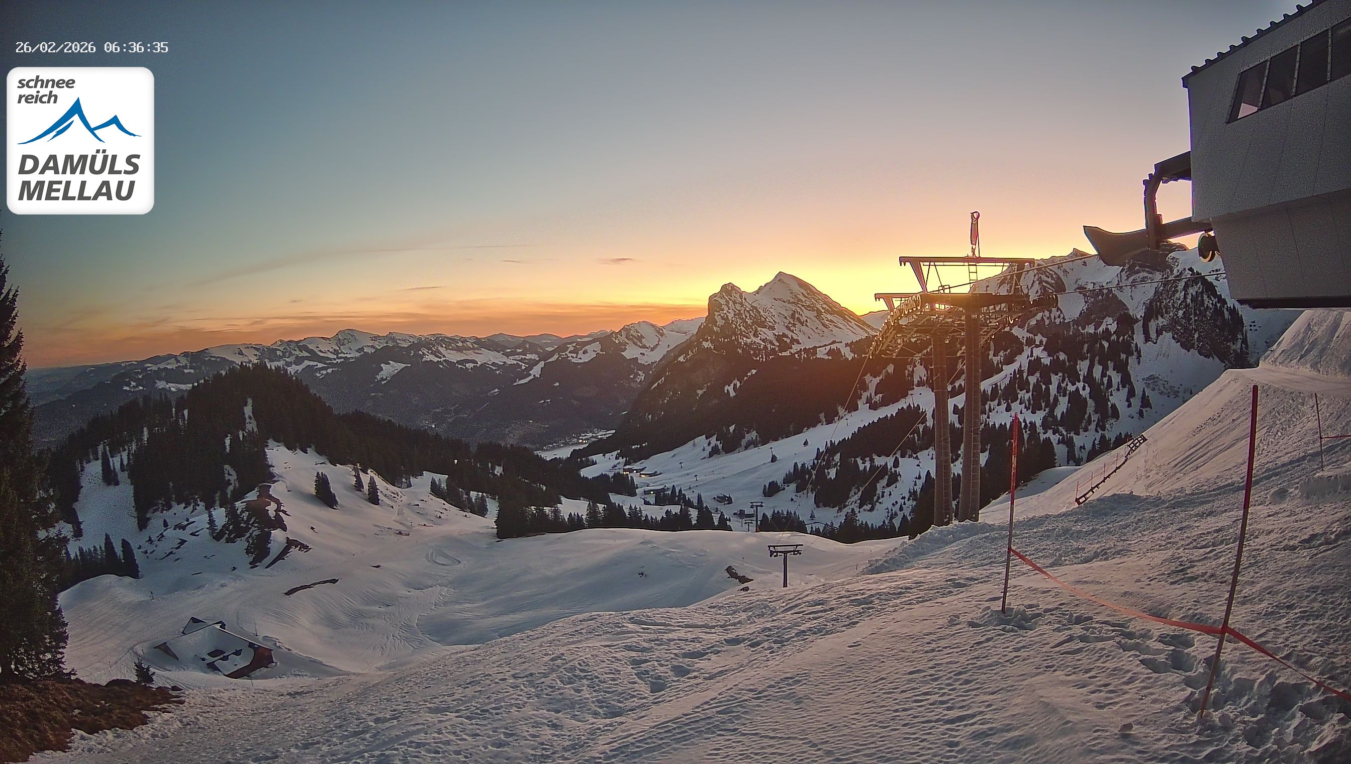 Archiviertes Webcam Bild: Mellau: Bergstation Wildgunten am 26.02.2026 um 06:58 Uhr 06:00