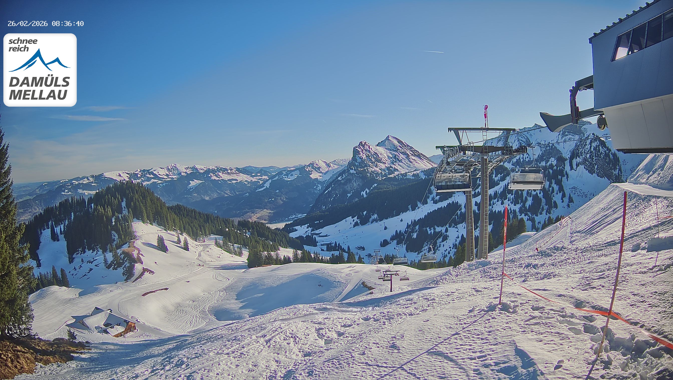 Archiviertes Webcam Bild: Mellau: Bergstation Wildgunten am 26.02.2026 um 08:58 Uhr 08:00