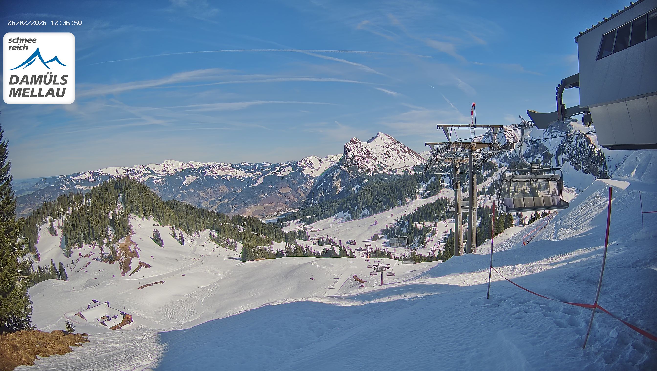 Archiviertes Webcam Bild: Mellau: Bergstation Wildgunten am 26.02.2026 um 12:58 Uhr 12:00