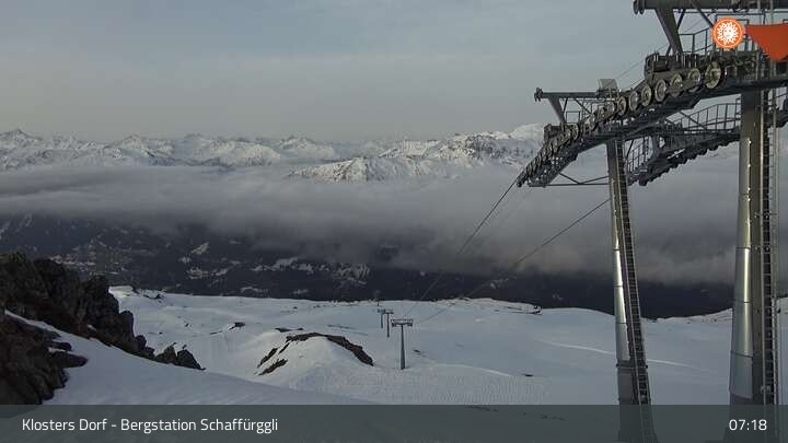 Archiviertes Webcam Bild: Klosters - Bergstation Schaffürggli am 12.04.2026 um 07:08 Uhr 07:00