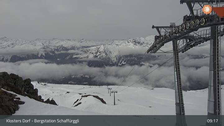 Archiviertes Webcam Bild: Klosters - Bergstation Schaffürggli am 12.04.2026 um 09:08 Uhr 09:00