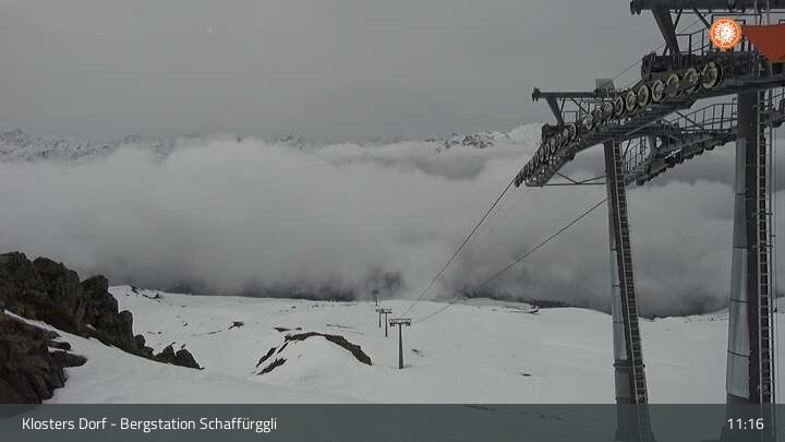 Archiviertes Webcam Bild: Klosters - Bergstation Schaffürggli am 12.04.2026 um 11:08 Uhr 11:00