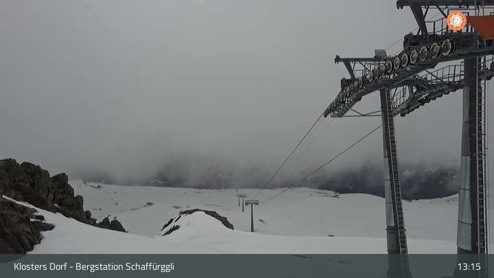 Archiviertes Webcam Bild: Klosters - Bergstation Schaffürggli am 12.04.2026 um 13:08 Uhr 13:00