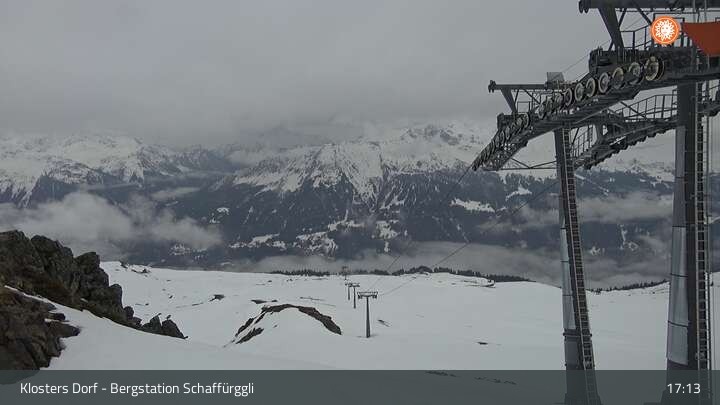 Archiviertes Webcam Bild: Klosters - Bergstation Schaffürggli am 12.04.2026 um 17:08 Uhr 17:00