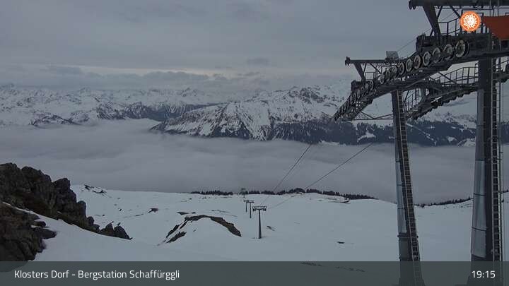 Archiviertes Webcam Bild: Klosters - Bergstation Schaffürggli am 12.04.2026 um 19:08 Uhr Aktuell