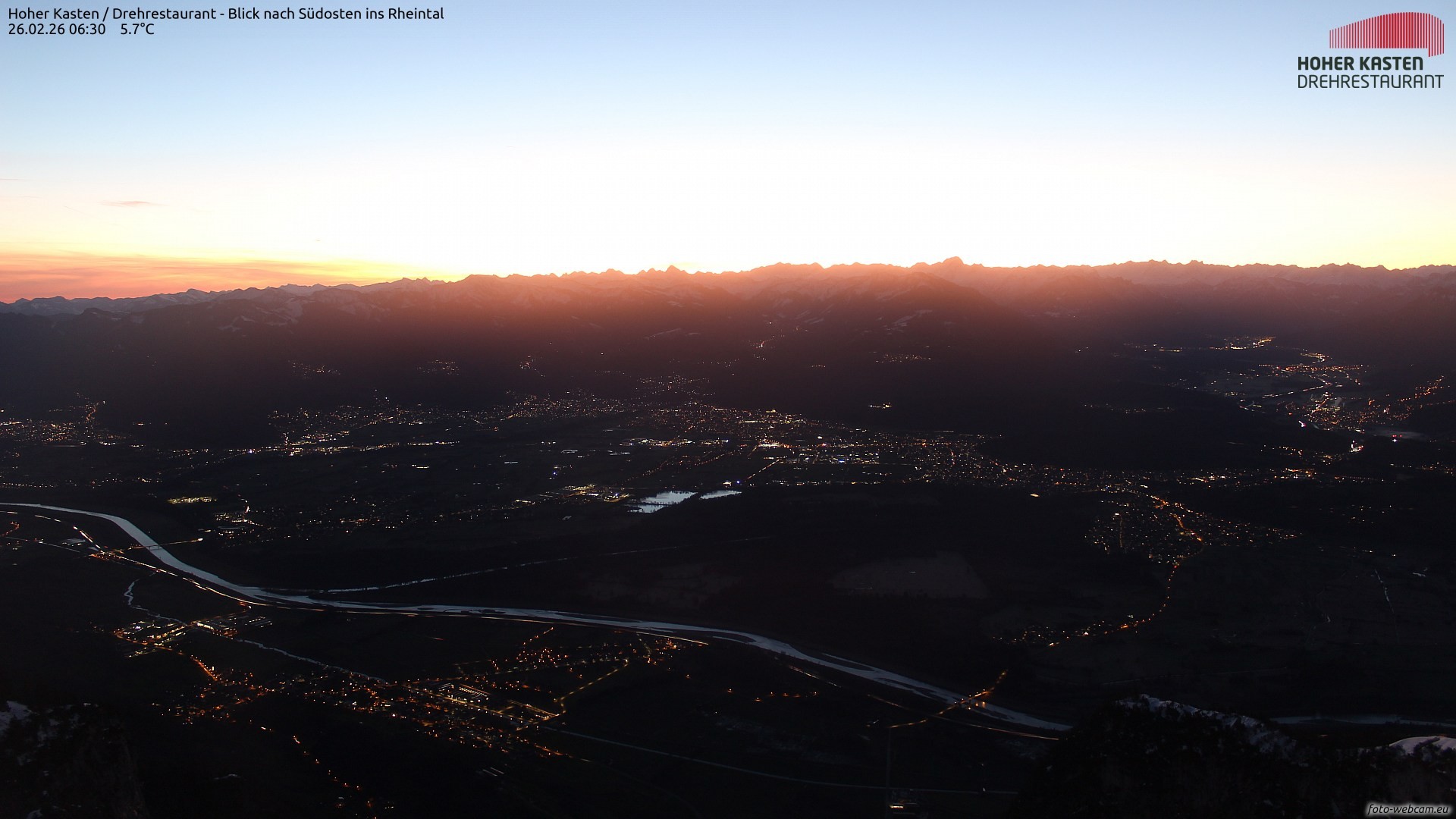 Archiviertes Webcam Bild: Drehrestaurant Hoher Kasten - Blick ins Rheintal am 26 Feb 2026 um 06:31 Uhr 05:00
