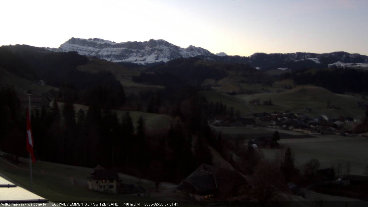 Archiviertes Webcam Bild: Blick vom Berghaus Eggiwil am 26 Feb 2026 um 07:39 Uhr 06:00