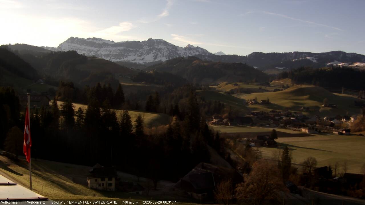 Archiviertes Webcam Bild: Blick vom Berghaus Eggiwil am 26 Feb 2026 um 08:39 Uhr 07:00