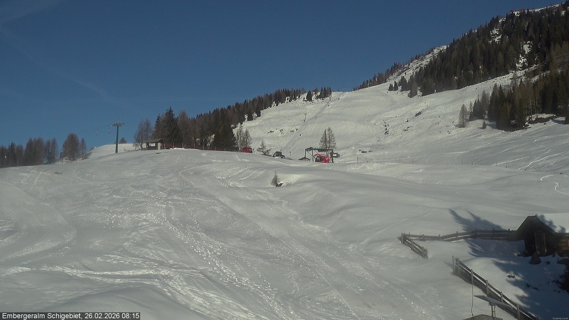 Archiviertes Webcam Bild: Abfahrt auf der Emberger Alm am 26 Feb 2026 um 08:19 Uhr 07:00