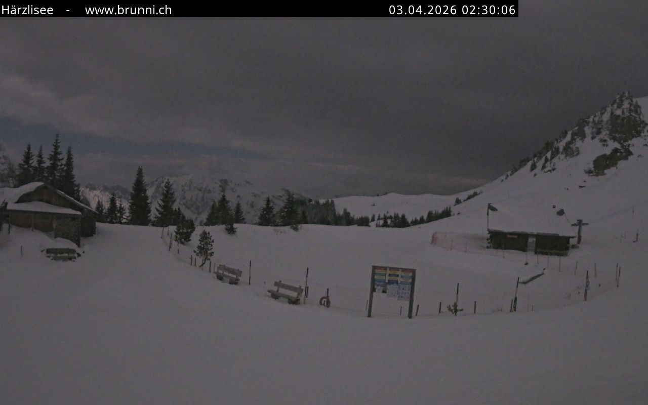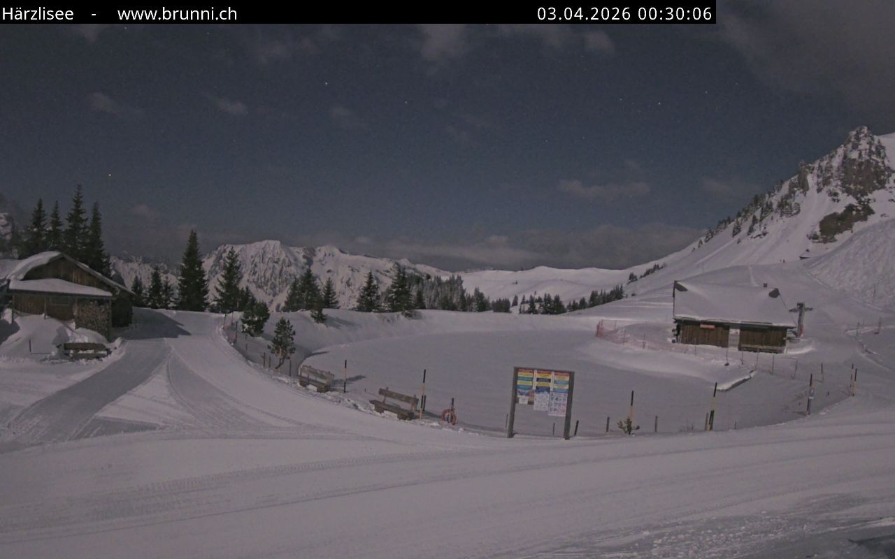 Archiviertes Webcam Bild: Engelberg: Härzlisee und Kräuterhütte am 03.04.2026 um 02:30 Uhr 02:00