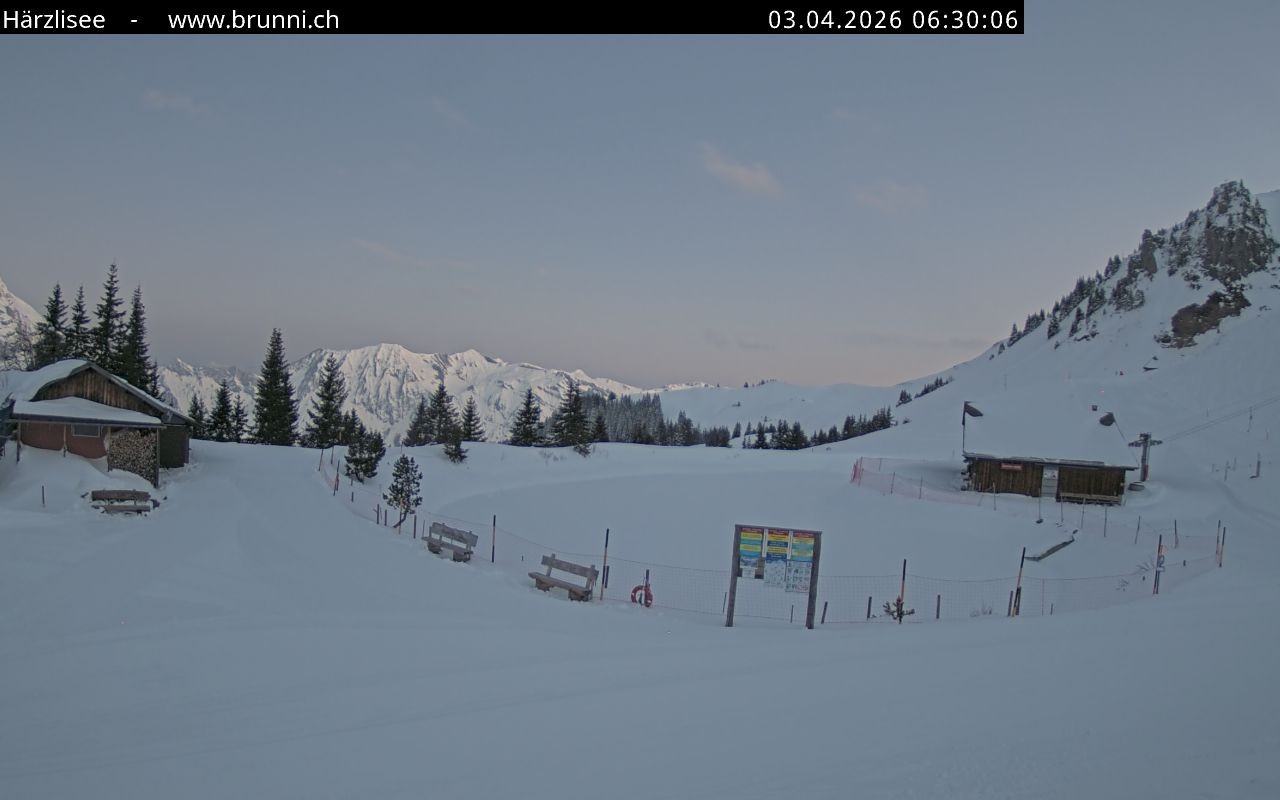 Archiviertes Webcam Bild: Engelberg: Härzlisee und Kräuterhütte am 03.04.2026 um 06:30 Uhr 06:00