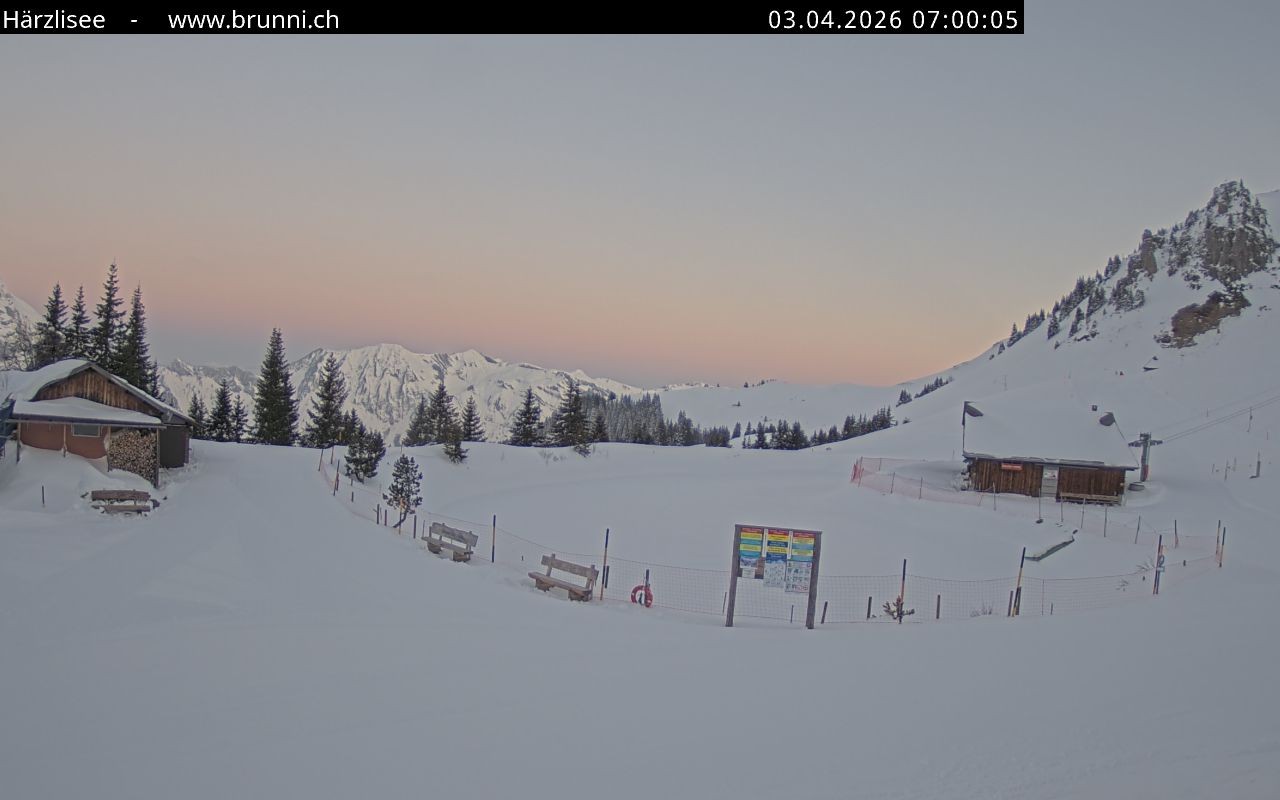 Archiviertes Webcam Bild: Engelberg: Härzlisee und Kräuterhütte am 03.04.2026 um 07:30 Uhr 07:00