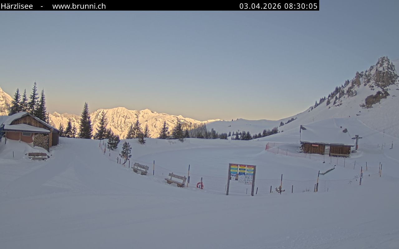 Archiviertes Webcam Bild: Engelberg: Härzlisee und Kräuterhütte am 03.04.2026 um 08:30 Uhr 08:00