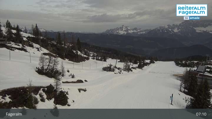 Archiviertes Webcam Bild: Fageralm: Panoramablick Skigebiet am 12.04.2026 um 07:58 Uhr 07:00